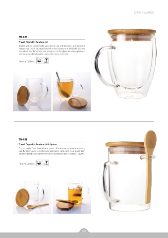Double-walled borosilicate glass travel cup with bamboo lid. Cup with a