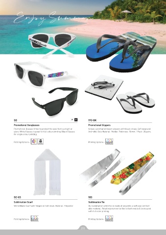 Promotional Glasses tinted to protect the eyes from sunlight or Unisex, sublimation beach slippers with black straps. Soft wear and