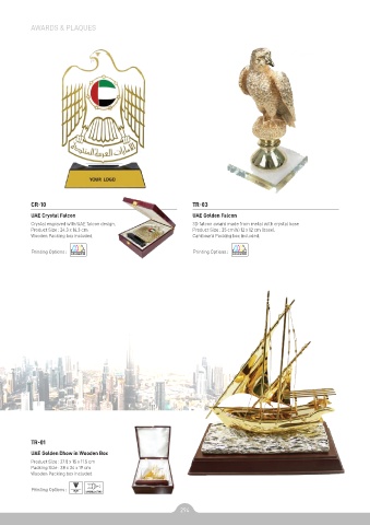 Crystal engraved with UAE falcon design. 3D falcon award made from metal with crystal base