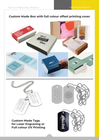 Turn your Ideas into a Product CUSTOMIZED PRODUCTS Custom Made Box with full colour offset printing cover Custom Made Tags for Laser Engraving or Full colour UV Printing 367