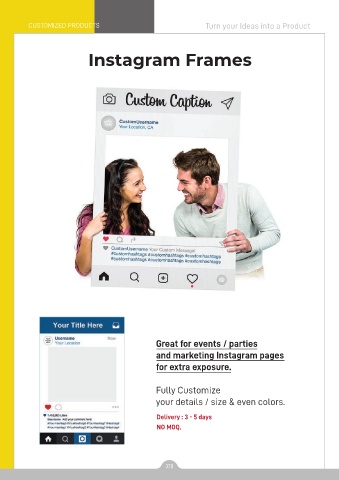 CUSTOMIZED PRODUCTS Turn your Ideas into a Product Instagram Frames Great for events / parties and marketing Instagram pages for extra exposure. Fully Customize your details / size & even colors. Delivery : 3 - 5 days NO MOQ. 378