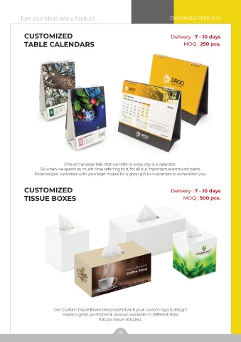 TABLE CALENDARS MOQ : 250 pcs.