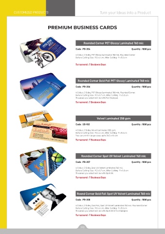 4 Colour, 2 Sides, Gold Foil, Spot UV Velvet Laminated 760 mic. Rounded Corner